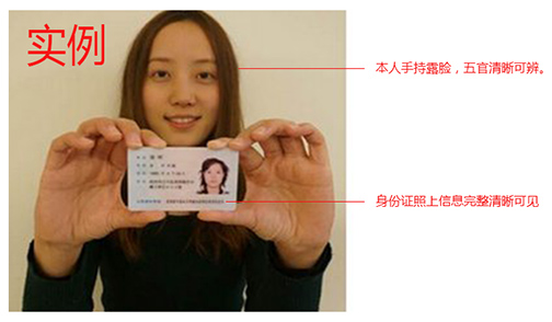 請(qǐng)上傳本人手持證件照,要求面部清晰無(wú)遮擋。同時(shí)證件照片和號(hào)碼清晰可辨認(rèn)。
