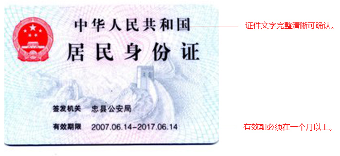 請(qǐng)上傳證件正面照片,要求證件文字清晰完整可辨認(rèn),證件有效期在一個(gè)月以上。